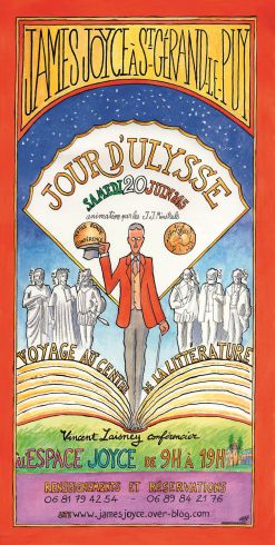 À Saint-Gérand-le-Puy, il s’est efforcé de cerner plus précisément les liens qui peuvent exister entre James Joyce et les six autres. À commencer, évidemment, par la “matrice” homérique d’Ulysse, la célèbre Odyssée, transposée et condensée par Joyce dans la banalité d’une journée (le 16 juin, le fameux Bloomsday) dans le Dublin de 1904 : « Dans l’Odyssée, on pérégrine ; avec Ulysse, on est dans un poème du mouvement, celui du petit voyage de la vie », résume Vincent Laisney.