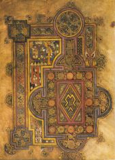 Pour de Bruyne, l’esthétique hispérique est une “esthétique de l’hermétisme [qui] prend exactement le contre-pied de l’esthétique du classicisme : elle est une esthétique à-rebours” (119). Obscurité recherchée // Joyce, « I have discovered I can do anything with language I want» (Ellmann 702). À son ami August Suter, il avait confié : « Je suis au bout de l’Anglais. » (Ellmann 702). Et à Samuel Beckett : « I have put the language to sleep. » (Ellmann 702) Comme l’écrit Adaline Glasheen, « Finnegans Wake is wilfully obscure. It was conceived as obscurity, it was executed as obscurity, it is about obscurity. » (Adaline Glasheen, A Second Census of “Finnegans Wake”: An Index to the Characters and Their Roles, Evanston, Northwestern University Press, 1963, xvii.) Je n’insiste pas sur Le Livre de Kells, admirablement décrit par Eco (CIT). Richard Hamann, historien de l’art allemand, d’ailleurs cité souvent par de Bruyne, décrit ainsi The Book of Kells : « Le dessin est constitué d’un ensemble d’éléments simples : points, traits, figures géométriques simples, cercles, triangles, carrés, crochets, lignes courbes, motifs étoilés. C es derniers s’enchaînent les uns à la suite des autres. […] C’est l’addition, et non la combinaison, qui crée la richesse. » (Ma traduction de Richard Hamann, Geschichte der Kunst von der altchristlichen Zeit bis zur Gegenwart, Berlin, Verlag von Th. Knaur Nachf, 1932, 120.) Hamann souligne le caractère “mouvant, changeant et tumultueux de la page" (Ibid. , 123). »