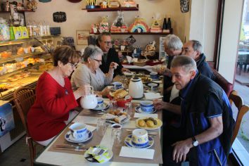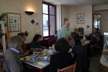 Même si les participants étaient un peu moins nombreux cette année, l'enthousiasme était là. Les lectures en français et en anglais et la musique traditionnelle irlandaise des JJ Minstrels, emmenés par Liam Healy, ont résonné dans les rues du village, à commencer par la pâtisserie Aux Délices qui avait pavoisé sa vitrine avec les drapeaux français et irlandais. Un copieux petit-déjeuner irlandais a apporté l'énergie qui a permis à la petite troupe d'amateurs de Joyce de s'élancer sur les pas de l'écrivain, faisant une halte à chaque endroit fréquenté par le « réfugié irlandais » en 1940.