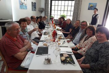 Après le déjeuner à l'Auberge des Tureaux, à Montaigu-le-Blin, l'assistance a profité de la terrasse de L'Olivier, à Saint-Gérand, puis elle s'est dirigée vers l'Espace Joyce pour suivre la conférence consacrée cette année au thème « père-fils ».