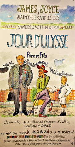 Préparé par trois séances de lectures (à Moulins le 22 mars, à Vichy le 19 avril et à Clermont-Ferrand le 24 mai), le Jour d'Ulysse qui s'est déroulé le samedi 23 juin avait pour thème la relation père-fils dans l'œuvre de Joyce sous le titre